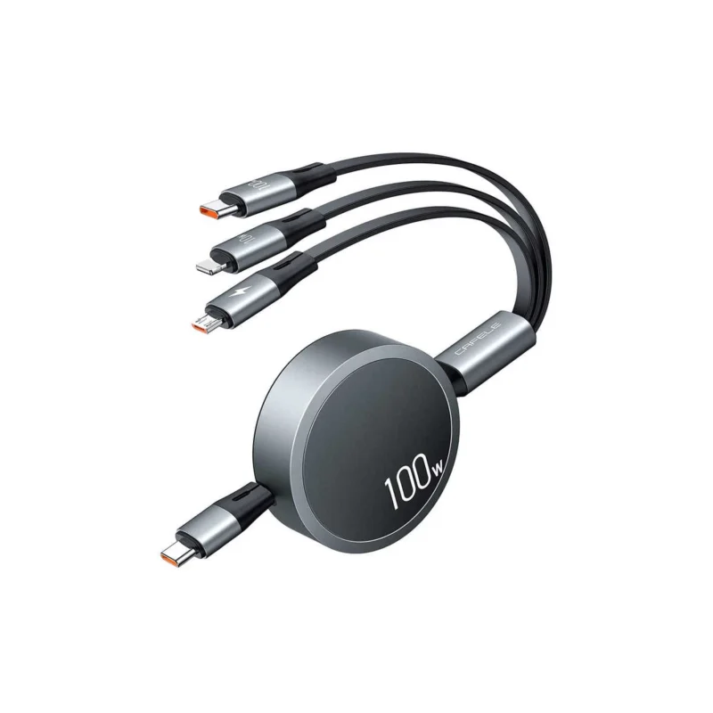 Cable Retráctil Cafele 100 W – USB-C – Lightning – Micro-USB (105 cm)